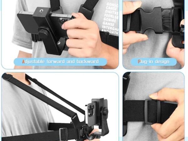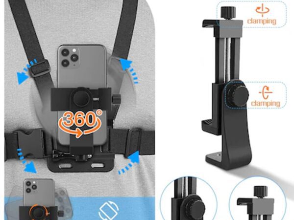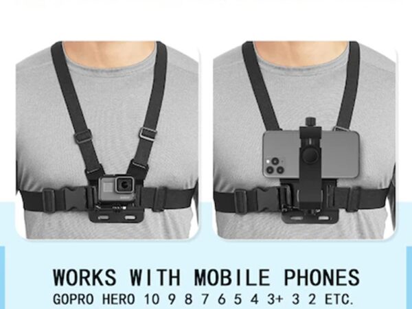 Комплект въртяща се стойка за гърди, За всички модели екшън камери, Адаптер за смартфони.