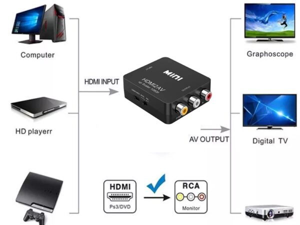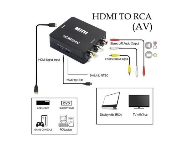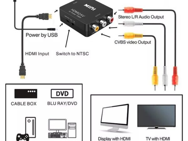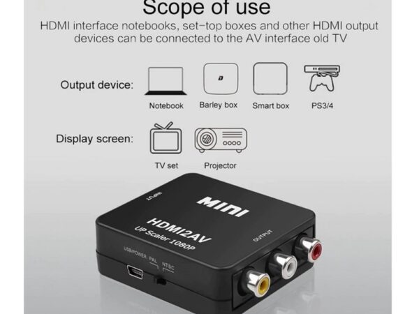 Подходящо е да преобразувате HDMI сигнал от сателитни, ефирни, игрови конзоли, компютри, лаптопи, тв боксове и др. към стари телевизори или по-нови такива без HDMI вход.