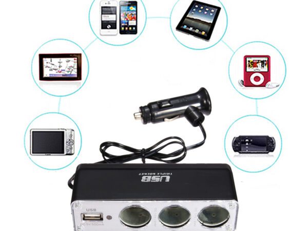 Тройно зарядно за кола + USB C...