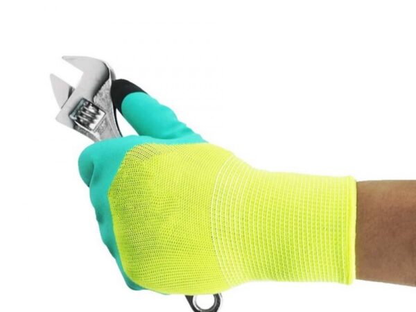 12 бр. Висококачествени Работни Ръкавици 1TECH Elephant-2020, Латекс, Безшевни, Плетени, Жълтозелен с черно.