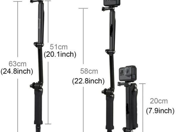 В разгънато положение моноподът се разтяга до 51 см, а в сгънато до 19 см.