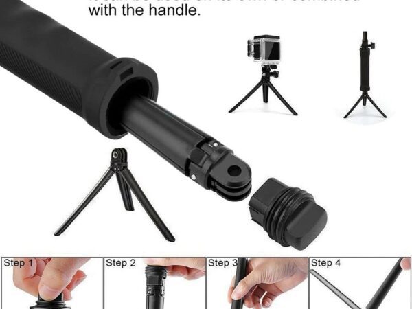 Намиращия се вътре в дръжката трипод е изключително лек, с малки размери и той може да бъде използван не само в комбинация с останалата част от монтажа, но и отделно.