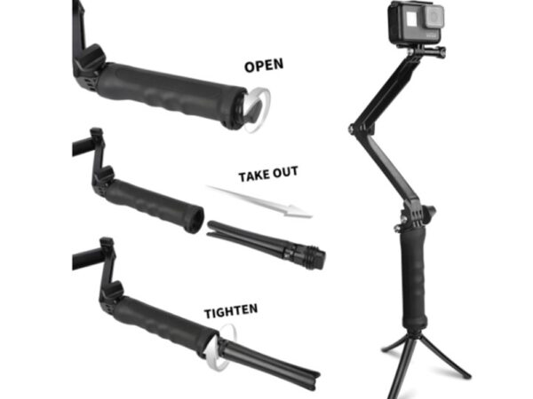 3-Way Grip Mount мултифункционална ръкохватка за GoPro e супер лек и гъвкав монтаж намиращ различни приложения: като ръкохватка за камерата, удължител(монопод) или като статив.